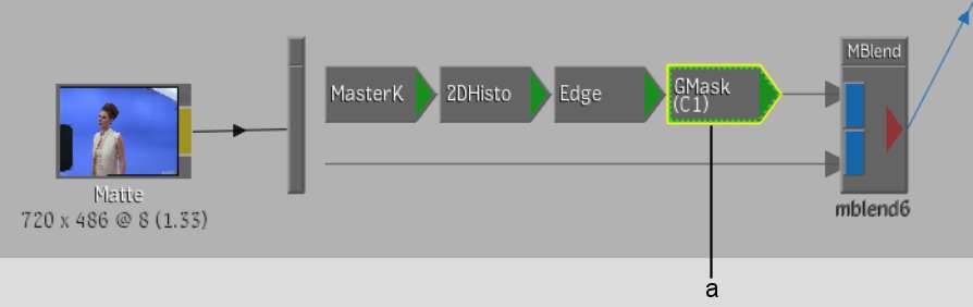 As you work with different nodes to create your key, it is often useful to see the effect of your changes on the image at a later part of the pipeline. You do this using context points. You set a context point on a particular node, then view that context point from the node you are working in. For example, you could place a Degrain node at the beginning of the Matte branch and set a context point on the MasterK node. You could then degrain the clip while viewing the context point, in this case, the Current Result of the Master Keyer.