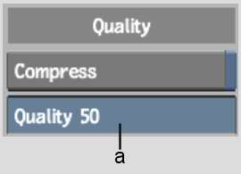 JPEG Quality field Specifies the degree of quality versus compression. A value of 0 gives the lowest quality (and highest compression), while a value of 100 gives the best quality (but applies no compression). This button is active only when File Format is set to JPEG.
