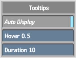 Auto Display buttonEnable or disable automatic tooltip display. If you disable automatic display of tooltips, you can still display them for selected buttons using the hotkey Ctrl+Alt+spacebar.