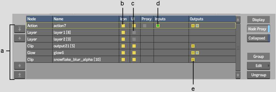 Node Proxy Display a preview proxy of a node in the group. To change the proxy that is displayed, press the Shift + up or down arrow as you navigate through the Group List.