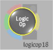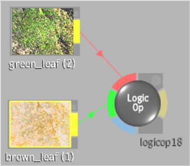 For example, the node on the left shows a Logic Op node before double-clicking a source tab. The process tree on the right shows the same Logic Op node after double-clicking the red source tab and selecting a front clip and a back clip from the EditDesk.