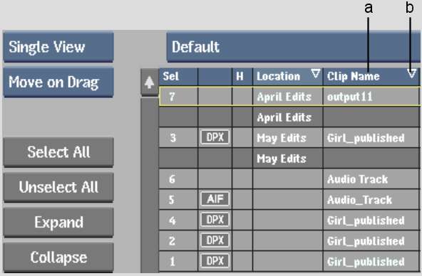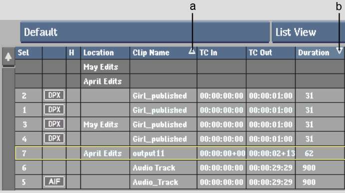 (a) Primary sort on Clip Name field (b) Secondary sort on Created field