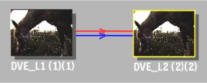 After you link DVE Layer Objects using re-entry to replace front clips, matte clips, or both, you can expand the linked DVE Layer Objects to reveal all of their components (including front and matte source nodes).