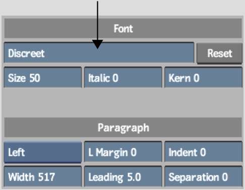 The Text menu reappears with the name of the new font in the Font field.
