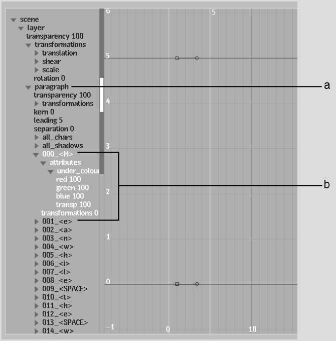 (a) Paragraph folder contains all the characters, including spaces between words (b) You can animate specific channels for each character