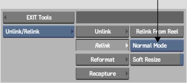 You can link the captured media directly from the Recapture menu after recapturing it, or from the clip library using the Relink tool. In most instances, it is more convenient to relink directly after recapture from the Recapture menu. When you relink the media to the clip from the Recapture menu, an assembled clip is placed in the specified reel. This clip is given the same name as the original unlinked clip. The original unlinked media clip is kept in its original location. This clip can be used again for recapturing.