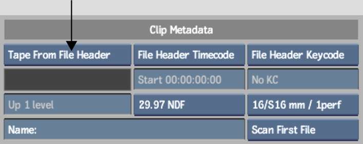 You can infer the tape name from a directory name, read the tape name from a file header, or enter the tape name manually. You can also read timecode and keycode information from the clip. See Clip Metadata Group.