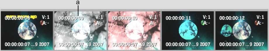 In Frames view, every frame in the edit sequence is displayed. Although you cannot edit in this mode, it is useful for viewing your entire edit.