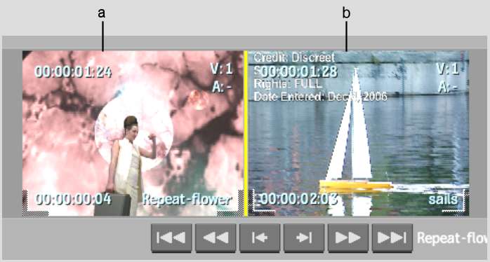 In Storyboard view, only the first frame of each clip in the edit sequence is displayed. Shuttle through the sequence by dragging the cursor across the bottom of any frame.