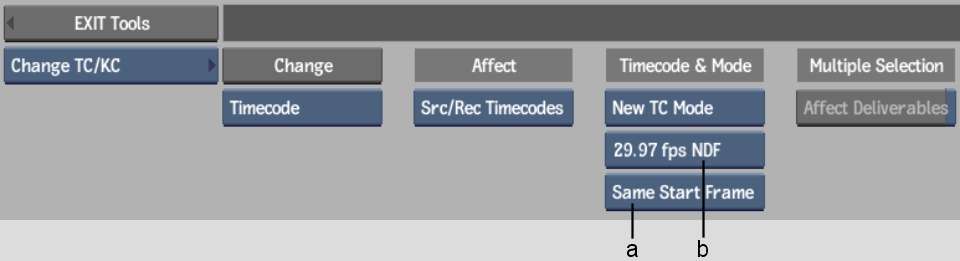 The Change Frame Code Mode tool allows you to change the framerate and drop frame mode of a clip, but also deletes any Deliverable attached to it. The Change Frame Code Mode tool can be accessed as follows: