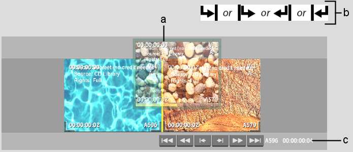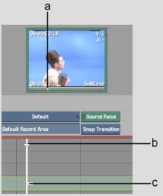 (a) Source clip positioner  (b) Focus point  (c) Record clip positioner