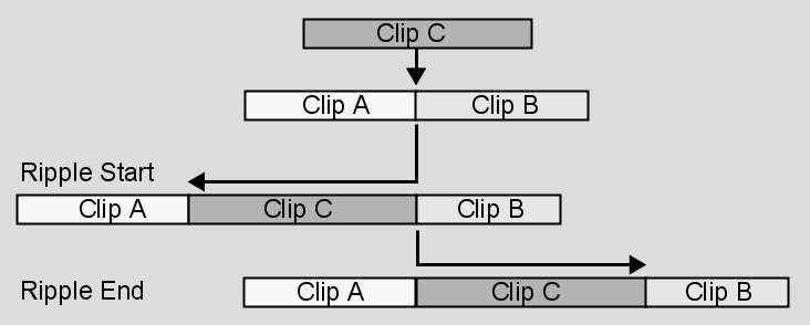 | Start | Ripple all clips preceding the selected clip or transition. The clips following the selected clip or transition are unaffected. |
