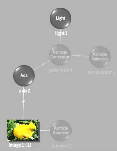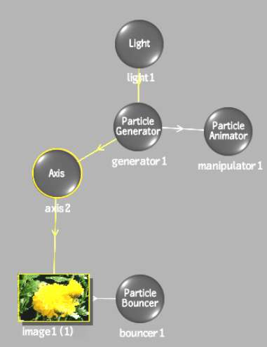 When importing a setup that contains non-supported objects (such as particles and deformations in Smoke), these objects are displayed as greyed out nodes in the schematic, and greyed out menus in the Object menu. These greyed out objects are read-only objects that can be viewed (in the image window and the Object menu), but not modified or linked to or from. In Channels view, you can view the parent channel for the non-supported object, and in Tracks view, you can slide or stretch the parent channel. If you modify the setup and resave it, you can then open it in the application that supports the objects, and modify all objects.