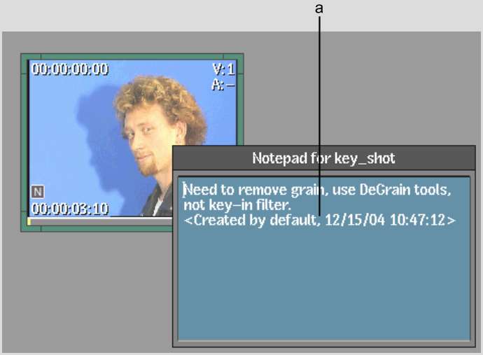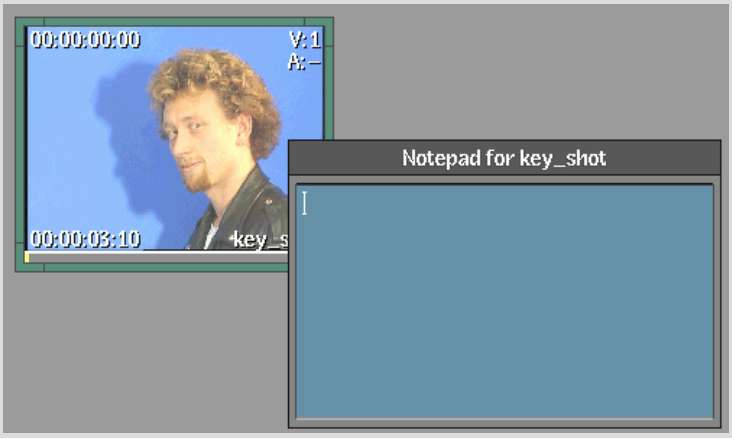 You can add notes to clips on the EditDesk using the built-in notepad, which is a simple text editor. Each entry is annotated with the creation date and time of the note and the user who entered it, so you can use the clip notepad as an informal discussion area for clips in progress.