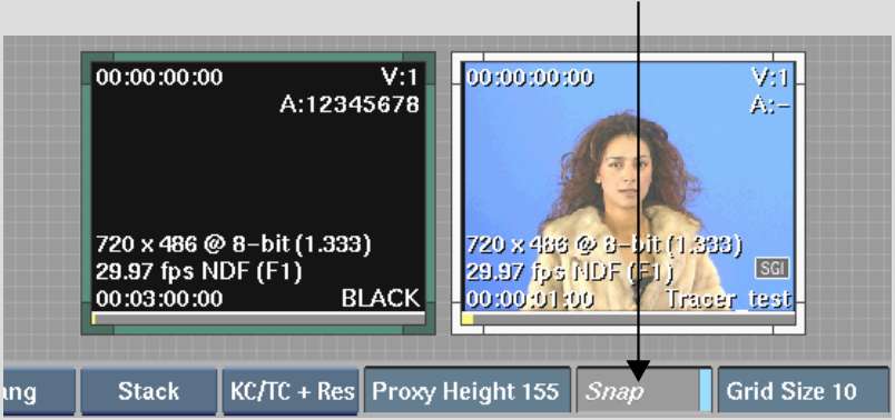 | Stack | Stack the clips one on top of the other. The clips are stacked under the focus clip. There is no indication of how many clips are in the stack. |