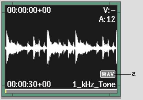 Soft-import clips have the same display characteristics, but also have an icon above the clip name. The icon indicates that the clip is a soft-import video or audio clip and the format of the source files.