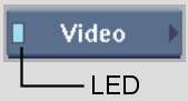 Status indicator. Blue indicates that the status is “on” or “active.” Dark