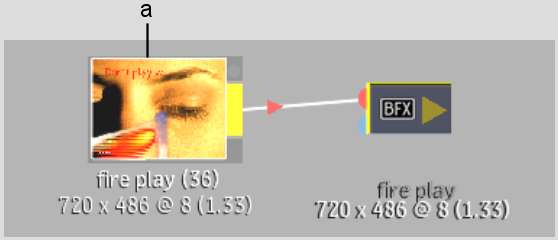 The segment’s source is loaded as a clip in a new Batch setup. In the following example, the source segment is brought into a Batch setup without its Axis Key and Text soft effects.