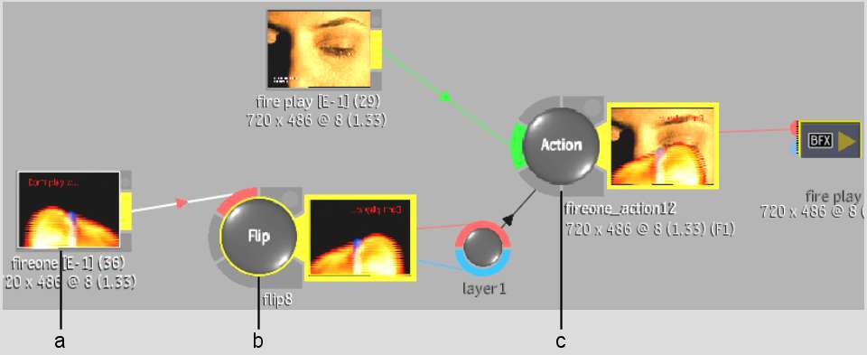 In the following example, the Flip effect is part of the new source segment. If you bring the segment into a new BFX level with the Pre option and create a Batch FX, the setup is applied to the modified source.