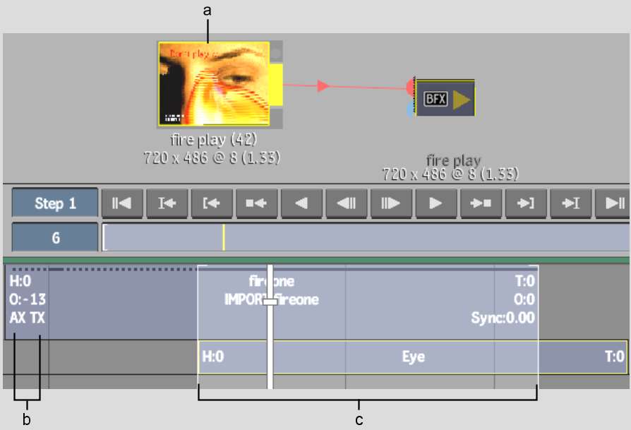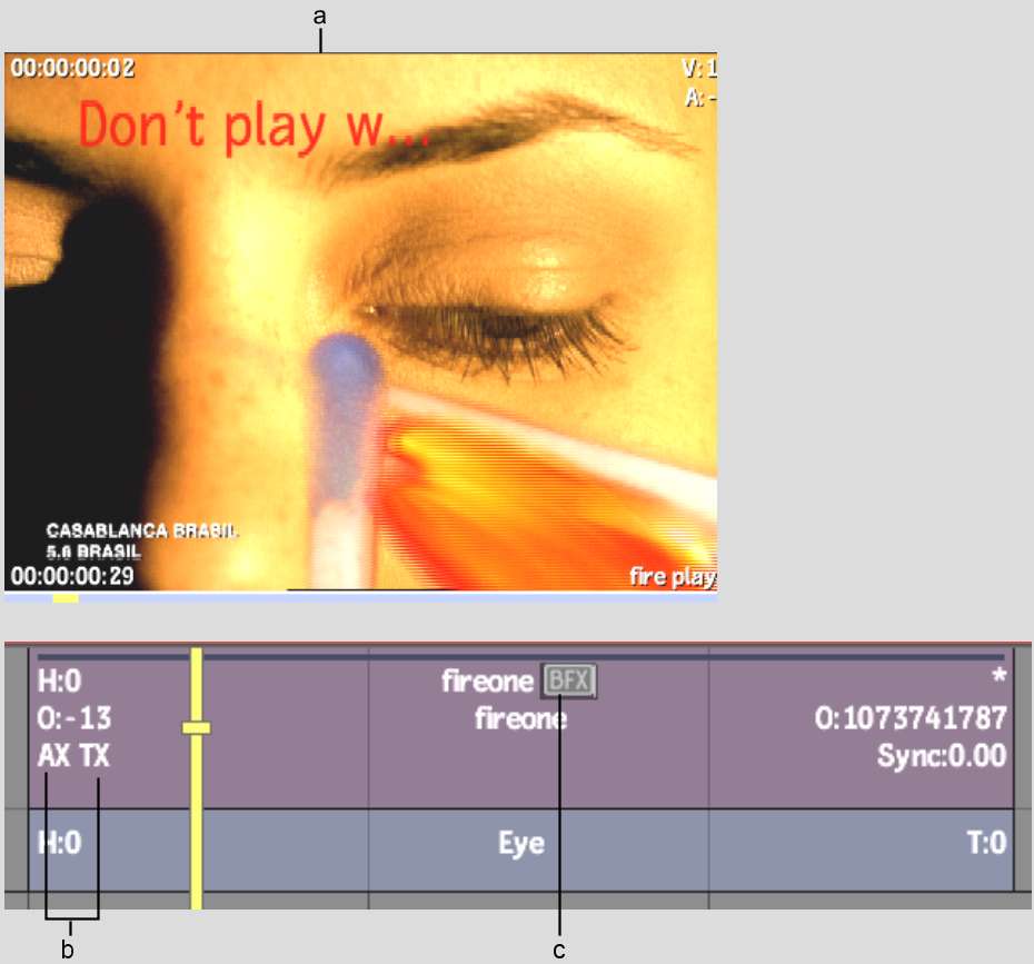(a) Result clip (b) Axis Key and Text soft effect indicators (c) BFX icon