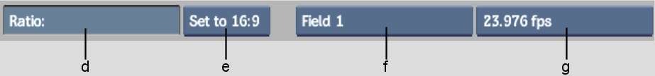 (d) Aspect Ratio field (e) Aspect Ratio box (f) Scan Mode box (g) Framerate box