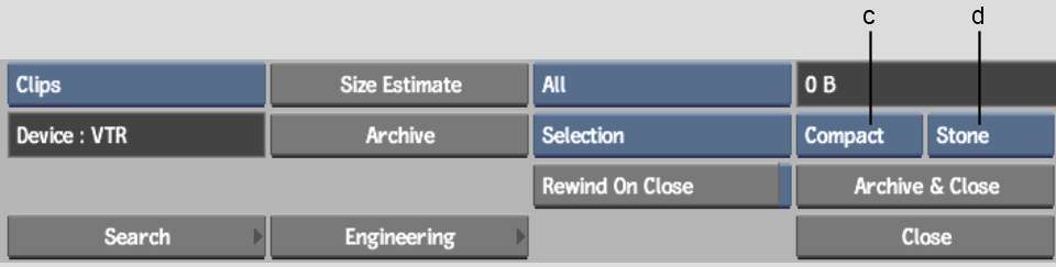 (a) Library Type box (b) Clip Library box (c) Backup Set box (d) Archiving Mode box