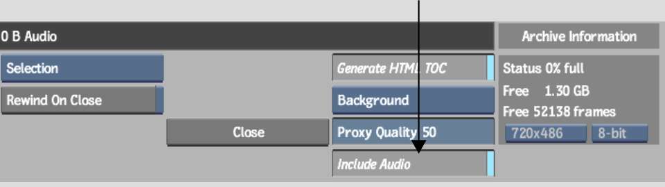 NoteIf you disable Include Audio when archiving, the audio track information and the audio data of the master clips are not archived. The audio of the source clips found in the Clip History is archived. To archive without any audio, you must delete the sources and the intermediates. See Deleting Sources and Intermediates.