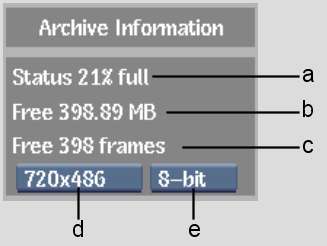 3. The Archive Information displays the percentage of space used on the medium and how much space is available for archiving, in both megabytes and frames.