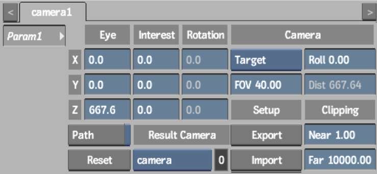 Result Camera boxSpecify which camera is active. The active camera is the one that will be used when processing/rendering your scene. The field displays the active camera number. A value of 0 indicates that you are viewing the scene through the default camera.