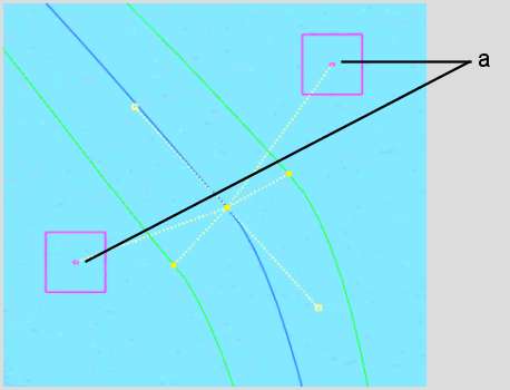 The area that each picker affects extends halfway towards the two adjacent mask vertices, and up to the two softness borders, as shown in the following example.