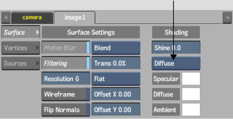 Set how a surface reflects incidental light by applying ambient or diffuse lighting. The actual colour of the reflection depends on both the colour value of each pixel and the colour of the incidental light. The intensity of the reflection depends on the orientation of the light source relative to the surface; it is greatest where the incident light strikes the object perpendicular to its surface. The intensity of the reflection is independent of the camera eye position.