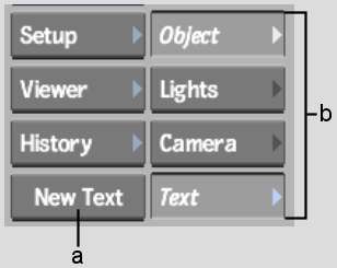 | New Text | The Text attributes are identical to the corresponding attributes in Action with the exception of texture controls. To display the Text menu button, click the New Text button. |