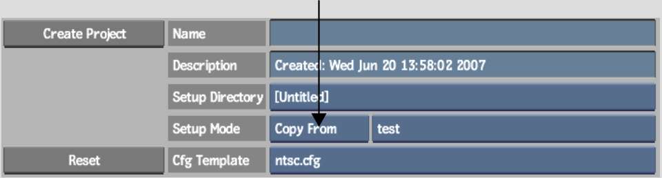 2. From the Projects box that appears to the right of the Setup Mode box, select the existing project from which you want to copy the setups.
