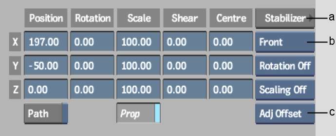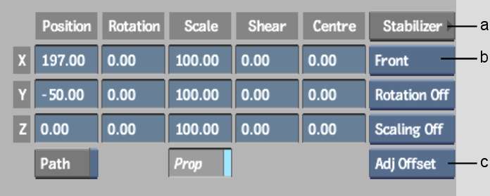 An Axis node contains all the rotation, scaling, and position data for the mask. You can change all this information in the Mask menu. The Axis controls are identical to those in the Action Axis menu. See Action: Axis.