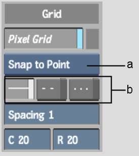 To toggle the grid on and off, click Pixel Grid. When Pixel Grid is on, use the following controls to configure the appearance and behaviour of the grid.