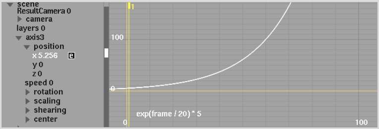 - exp(frame / 20) * 5 yields the following curve: