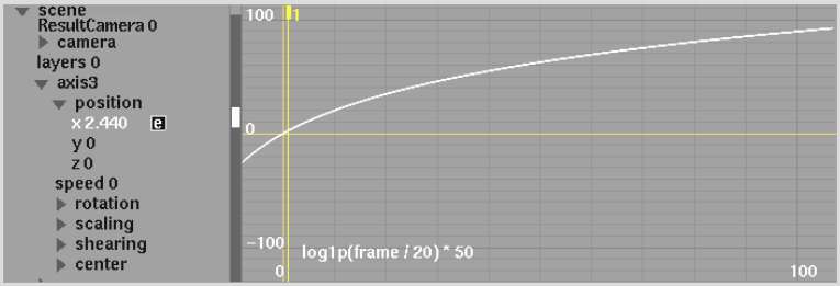 - log1p(frame / 20) * 50 yields the following curve: