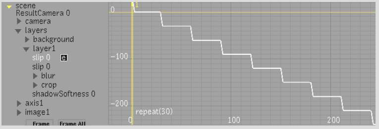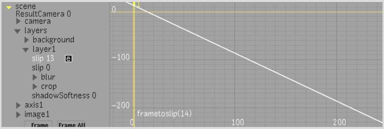 • frametoslip(10) returns a slip value that makes a clip freeze at frame 10.