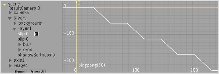 • pingpong(10) returns a slip value that makes a clip continuously play in a forward and backward cycle from frame 1 to frame 10.