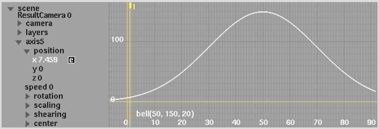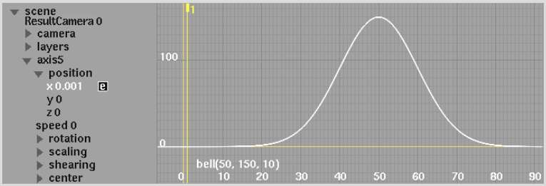 Returns a set of values representing a bell (normal distribution) curve over time. You can specify the centre frame number and height and width characteristics of the curve.